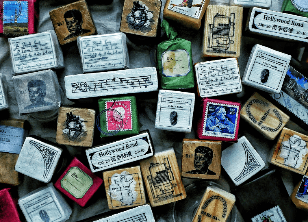 木製スタンプやデザインペーパー、