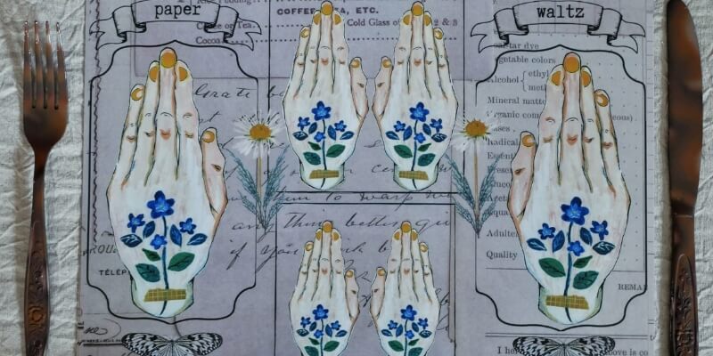 様々なポーズをきめている手のイラストを集めたデザインペーパーです。手のモデルは、夫や娘に協力してもらい1つ1つ描き上げました。コラージュなどのクラフトワークにお役立ていただければ、幸いです。