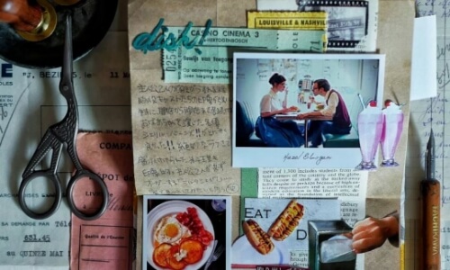 制作した(架空)映画フライヤーやポラロイド写真などを使って、あたかも実在の映画を観たかのようにノートに記録していくコラージュが大好きです。